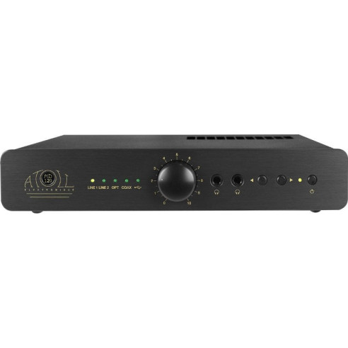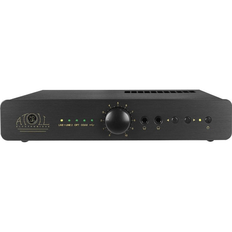 Atoll HD120SE - Ampli Casque. 1,4 Watts à 32Ω. 112 dB. 1 Hz - 150 kHz. Alimentation de 12,8 VA et 12 425 µF. Convertisseur BurrBrown PCM5102 jusqu'à 32 bits / 384 kHz. 1x Optique. 1x Coaxial. 1x USB. 2x Entrées & 1x Sortie RCA Stéréo. 2x Sorties Casques 6,35 mm. Poids : 2,5 kg