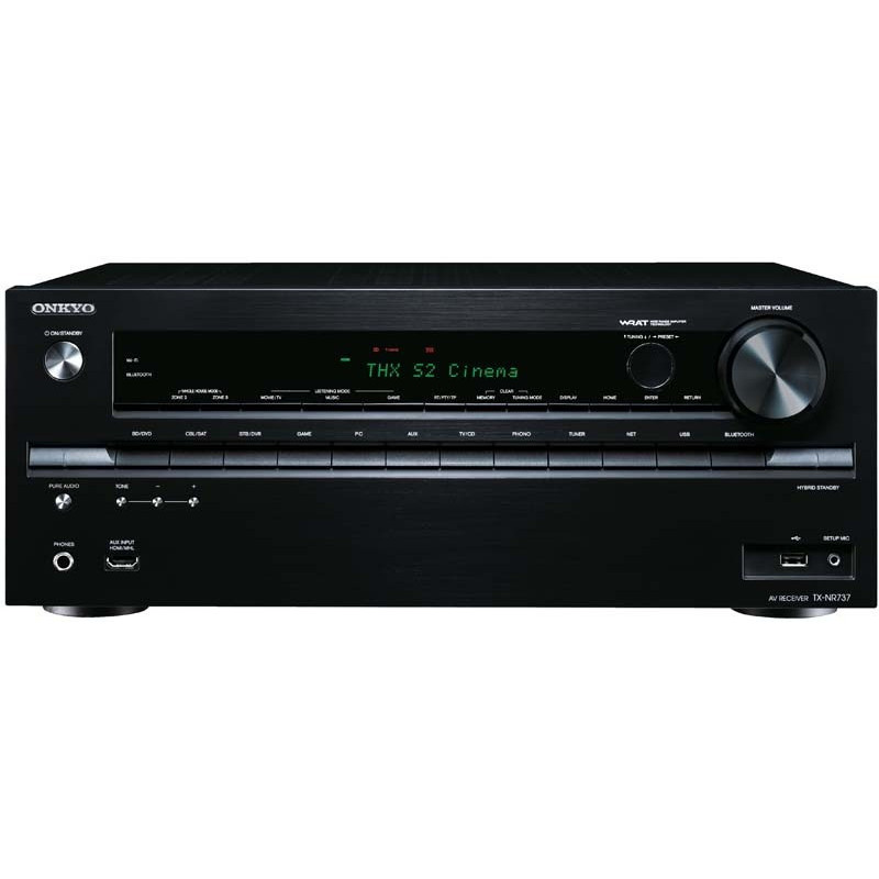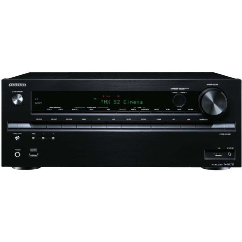 Onkyo TX-NR737 - Ampli Home Cinéma 7.2 THX Select 2 Plus. 7x170W (6ohms). 3D 4k@60Hz. Scaler Qdeo. Zone 3. 7x HDMI + 2x sorties HDMI 2.0. 2x sorties SUB. MHL. ARC. Wifi. BlueTooth. DLNA. USB. TI Burr-Brown. Flac HD, Spotify. Deezer, Web Radio Tuner In. Calibration auto AccuEQ. Poids : 11,5kg.