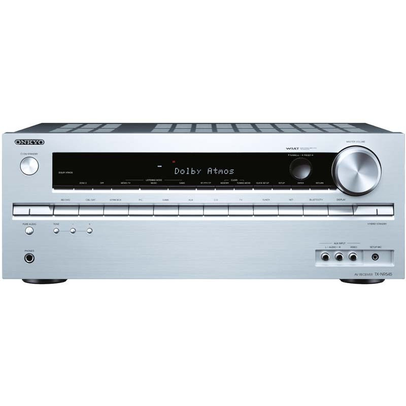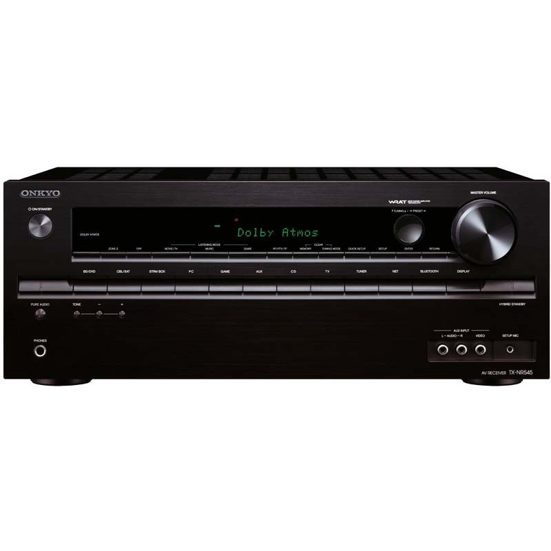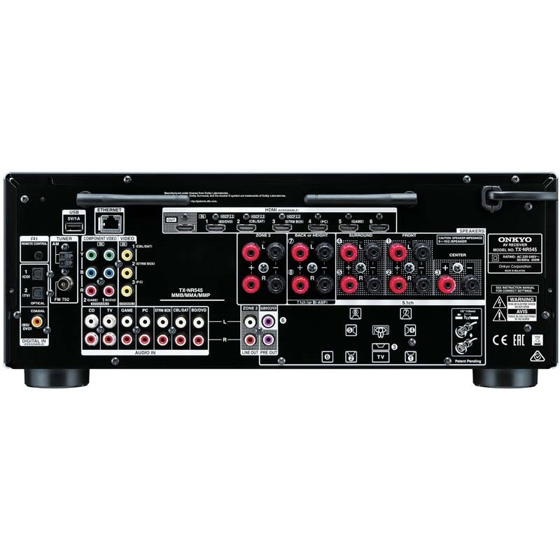 Onkyo TX-NR545 - Ampli Home Cinéma. 7x 120W (6Ohms). Convertisseur Hi-Grade AK4458 32 bits / 384 kHz. 4k & Dolby Atmos. 6x HDMI. 1x HDMI. 1x USB. 2x Optiques. 1x Coaxial. 8x RCA Stéréo. 2x Sub. 1x Casque. 1x Micro. WiFi. Ethernet. Bluetooth. Poids: 7,8 kg.
