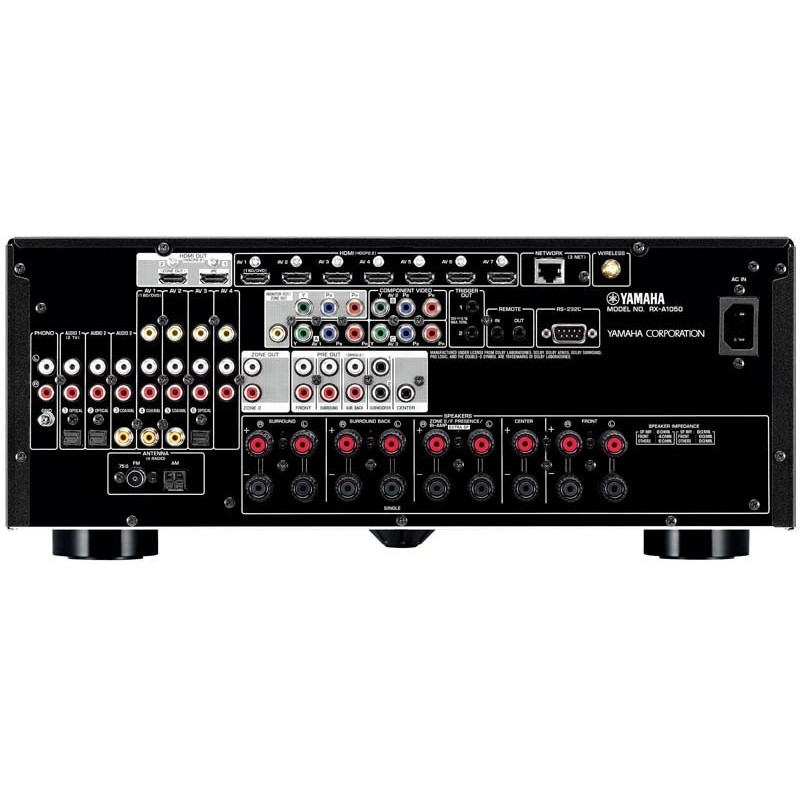 Yamaha RX-A1050 - Ampli Home Cinéma 7.2. 7x 170 W, Dolby Atmos. DTS:X. 8x Entrées & 2x Sorties HDMI. UHD. 3D. 1x USB. WiFi. Airplay. Bluetooth. Préout 7.2. Radio internet. Zone 2. ESS ES9006A. YPAO R.S.C multipoint. Poids : 14,9 kg.