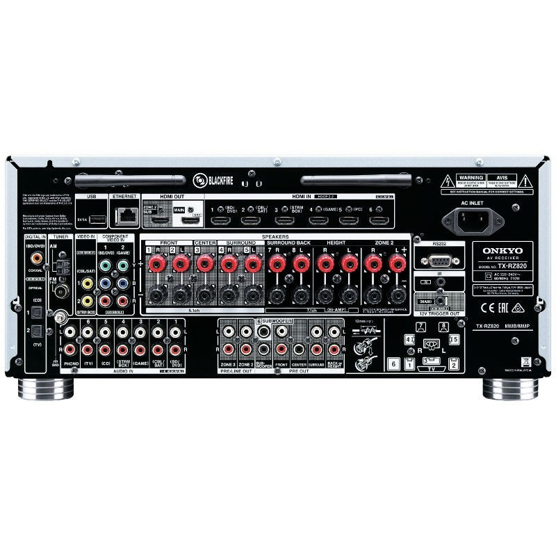 Onkyo TX-RZ820 - Ampli Home Cinéma 7.2. 7x 180W (6Ohms). THX® Select. Dolby Atmos® & DTS:X. Dolby Vision. HDR. BT.2020. 8x DAC AKM AK4458 32 bits / 384 kHz. AccuEQ + AccuReflex. FireConnect. Google Cast. 7x HDMI 2.0. 1x Zone 2 & 3. Pré-out 7.2. Poids: 14 kg.