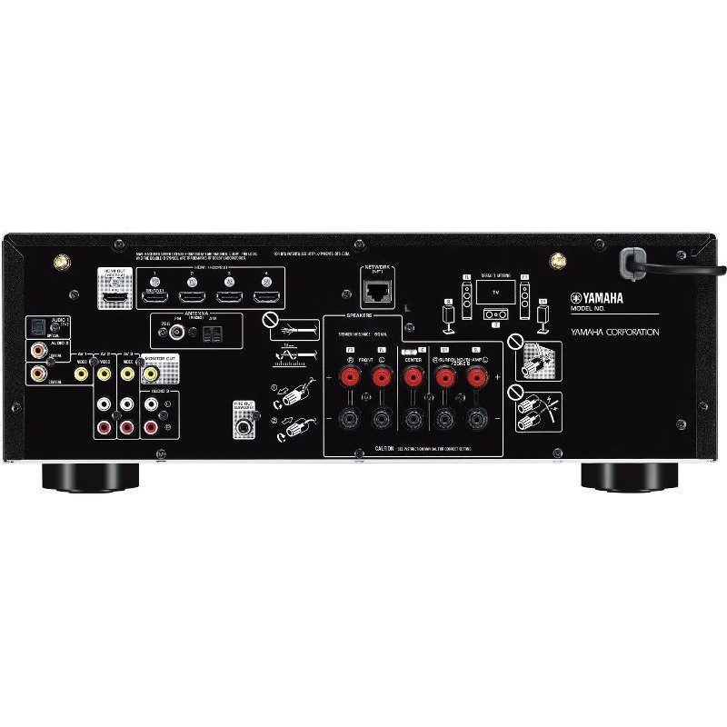 Yamaha RX-V485 - Ampli Home Cinéma 5.1. 5x 115 W. 4x Entrées & 1x Sortie HDMI 2.0a. 3D. UHD. Dolby Vision. Hybrid Log-Gamma. 3x DAC 32 bits / 384 kHz. Bluetooth. YPAO. Support Amazon Alexa. Option : Yamaha MusicCast 20 & MusicCast 50. Poids : 7,8 kg.