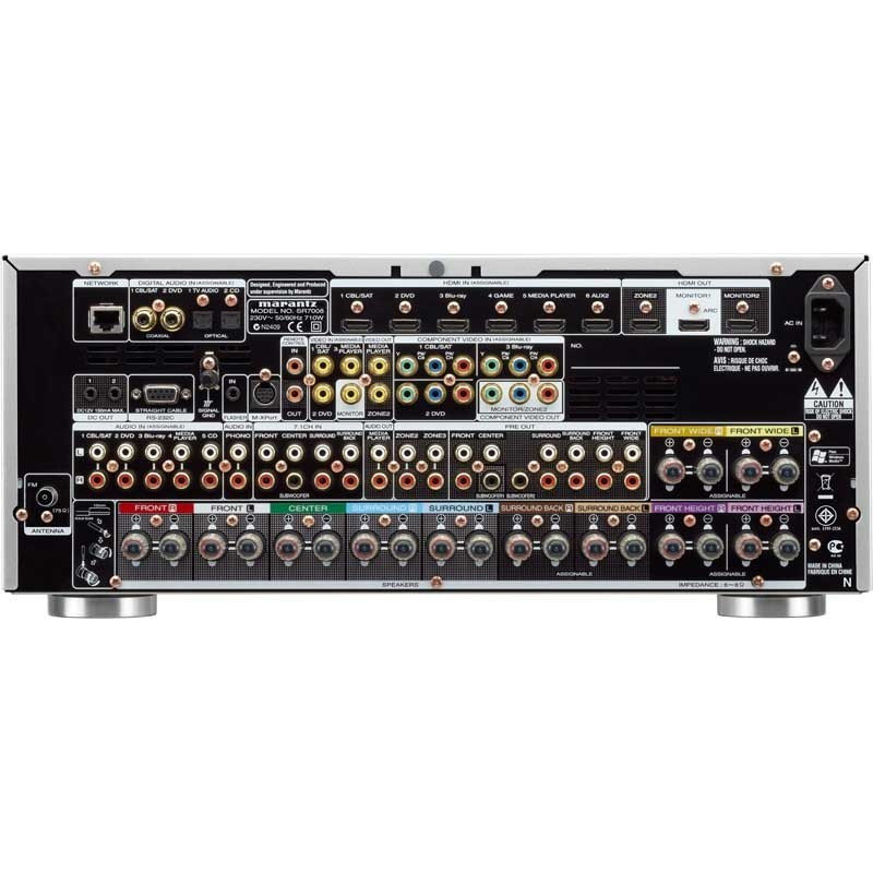 Marantz SR7008 - Ampli home cinema 9.2, 7x 125 W (8ohms), Amplification HDAM, 7x / 3x HDMI (ARC pour 1 sortie), Upscaling 1080p/4K/UltraHD, Fonction Airplay & DLNA, Calibration Audyssey DSX, DTS Neo X 9.1. Fonction InstaPrevue, HDMI Zone 2, Pré-out 11.2. Poids 13,6 kg.