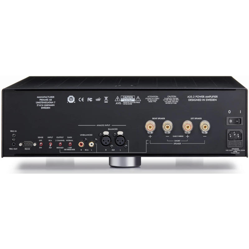 - Puissance Monumentale : C'est l'ampli de puissance le plus puissant de Primare, délivrant une puissance soutenue de 2x 200 Watts RMS sous 8Ω (et 2x 400 W sous 4Ω).