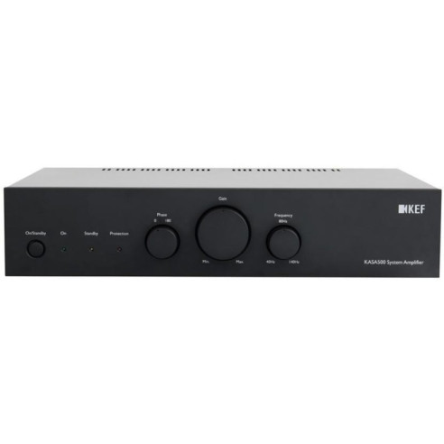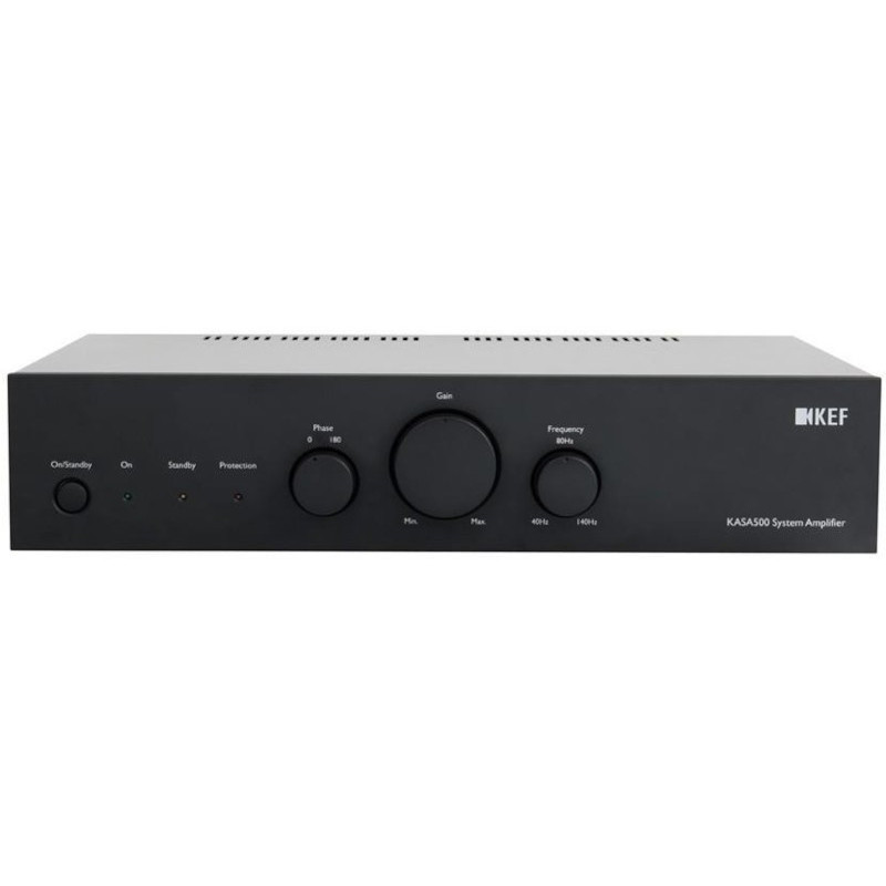 KEF KASA500 - Ampli pour Caisson de Basses. Classe-D. 2x 250 Watts sous 4Ω. 1x 500 Watts sous 8Ω. Fréquences de Transition : 40 - 140 Hz. 2x RCA Stéréo. Poids : 4 kg