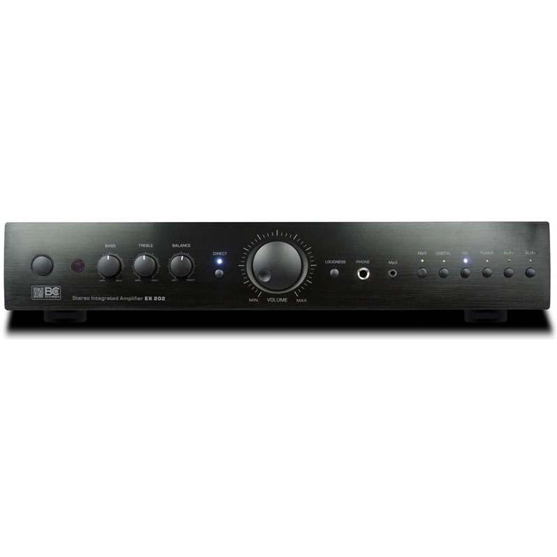 BC Acoustique EX-202 - Ampli stéréo. 2x 40W (8ohms). Transformateur torique 250VA. Bande passante: 10 Hz - 30 kHz. Pré-out stéréo RCA. 6x Entrées audio. Prise casque en façade. Poids : 6,1 kg.