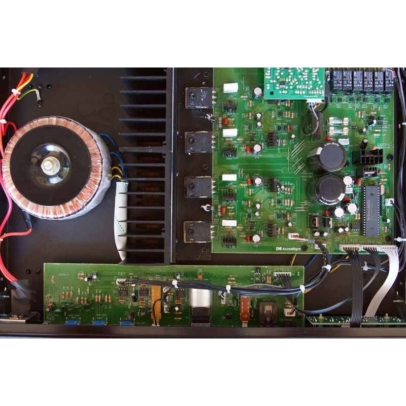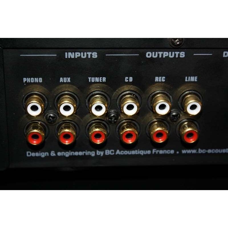 L’intégré stéréophonique BC Acoustique EX-202 a été conçu dans un esprit audiophile afin de garantir à l’amateur de haute-fidélité une restitution fidèle de ses musiques préférées. Il délivre une puissance de 2x40W RMS sous 8 Ohms et grâce à son alimentation ultra performante (transformateur torique de 250VA), il passe à 2x80W sous 4 Ohms. Il dispose de 6 entrées audio dont une numérique (optique et coaxiale) le permettant de se connecter aux téléviseurs de dernière génération. On trouve également en façade une entrée Jack 3,5mm pour y connecter toutes sortes de baladeurs ainsi qu’une prise casque au format 6,35mm. Il offre enfin une sortie « Pré-Out » permettant d’effectuer une bi-amplification.