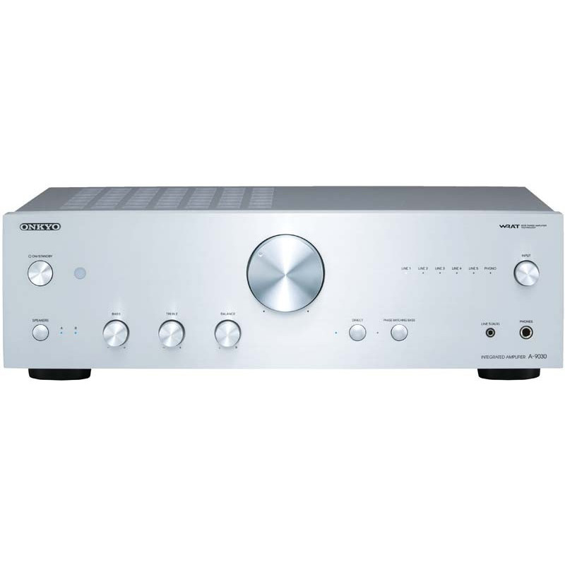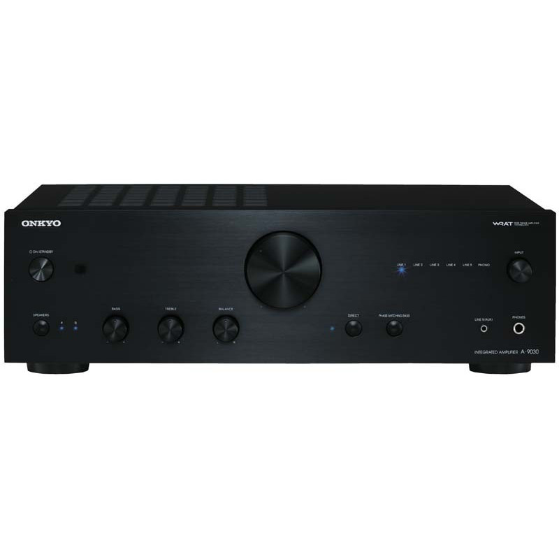 Onkyo A-9030 - Ampli stéréo. 2x 65W sous 8Ω. 10 Hz - 100 kHz. Technologie WRAT. Circuit Darlington. 5x entrées RCA Stéréo. 1x Sortie RCA Stéréo. 1x Phono. 1x Pré-out Subwoofer. Contrôle Graves/Aigus/Balance. Prise Casque. Poids: 7,4 kg.