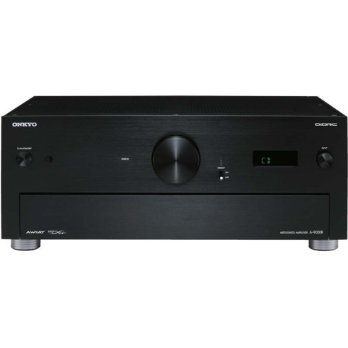 Onkyo A-9000R - Ampli stéréo bypass 2x 140W sous 4Ω. Technologie AWRAT. Circuit DIDRC. 2x Wolfson WM8742 24 bit / 192 kHz. 1x AES/EBU. 1x USB. 1x Optique. 2x Coaxiale. 3x entrées RCA Stéréo. 1x Sortie RCA Stéréo. 1x Phono. 1x Pré-out. Contrôle Graves/Aigus/Balance. Prise Casque. Poids: 18,5 kg.
