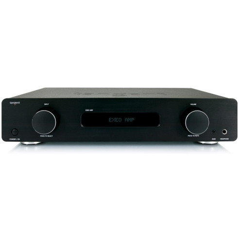 Tangent Exeo AMP - Ampli Stéréo. Amplification Classe D. 2x 60 Watts. 8Ω. 20 Hz - 20 kHz. 101 dB. Loudness. Correcteur Grave et Aigu. 5x Entrées RCA Stéréo dont 1x Phono. 1x AUX Mini-Jack 3,5 mm. 1x Casque 6,35 mm. 1x Sub. 1x Pré-out. 1x RCA Stéréo Out. Poids: 5 kg.