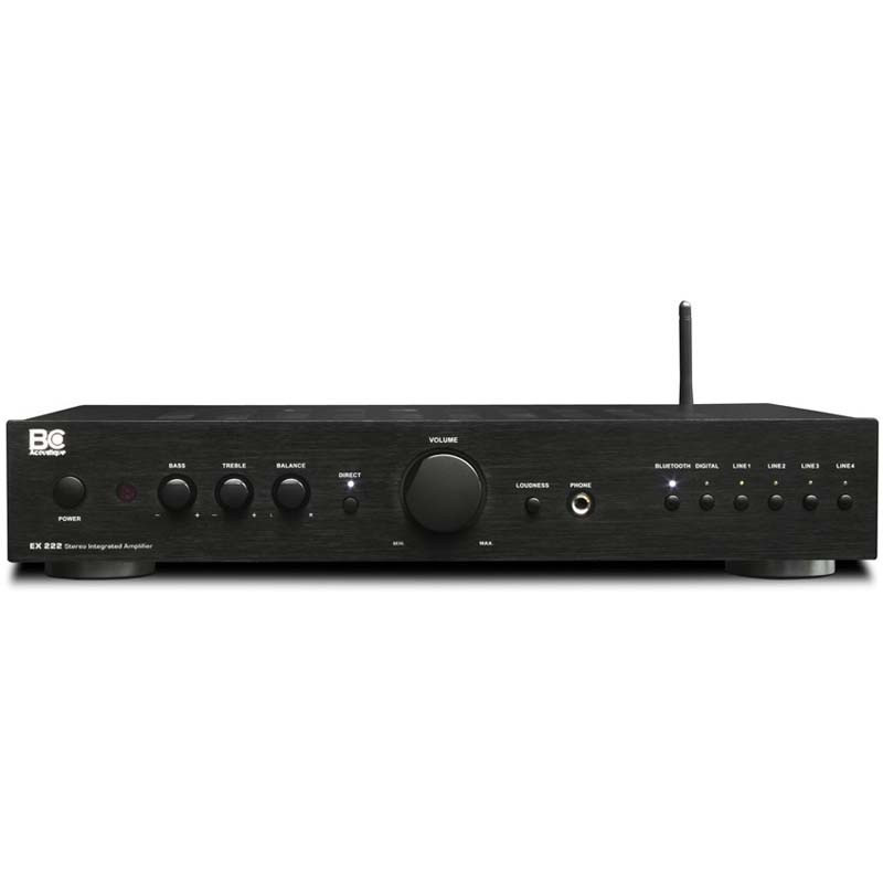 BC Acoustique EX-222.2 - Ampli stéréo avec BlueTooth aptX®. 2x 70W (8ohms). DAC Sirrus Logic 8415 24bits / 96 kHz. 100dB. 2x Transfos torique de 200VA. Entrées: 4x RCA, 1x Optique, 1x Coaxiale, 1x Jack 3,5mm. Sortie Casque 6,35mm. Pré-out stéréo RCA (caisson). Carte Phono en option. Poids : 8,3kg.