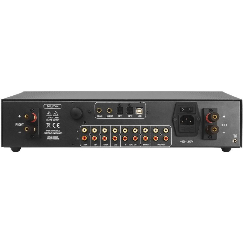 Atoll IN200 EVO - Ampli Stéréo 2x 120W RMS sous 8Ω / 2x 200W sous 4Ω. . Alimentation 2x 340 Va + 10 Va. Capacité de Puissance 59 220 µF. 100 dB. 5x RCA Stéréo. 1x RCA Stéréo By-Pass (Utilisation en home cinema). 1x RCA Stéréo Tape Out. 1x RCA Stéréo Préout. Options : Carte Num DA100 ou DA200, Carte Phono P50 ou P100. Poids : 12 kg.