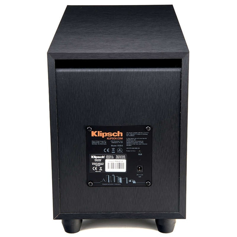 Klipsch RSB-6 - Barre de son 2.1. 60 W. 103 dB. 30 Hz - 15 kHz. 2x Tweeters de 19 mm dans Pavillon Tractrix 90°/90°. 2x Médiums en Fibre de Composite de 63,5 mm. 1x Subwoofer en Fibre de composite de 165 mm. BlueTooth. 2x HDMI 2.0. 1x Optique. 1x Mini-Jack 3,5 mm. Poids: 7,3 kg