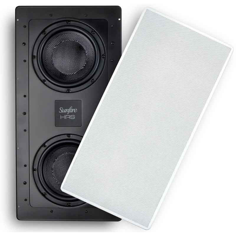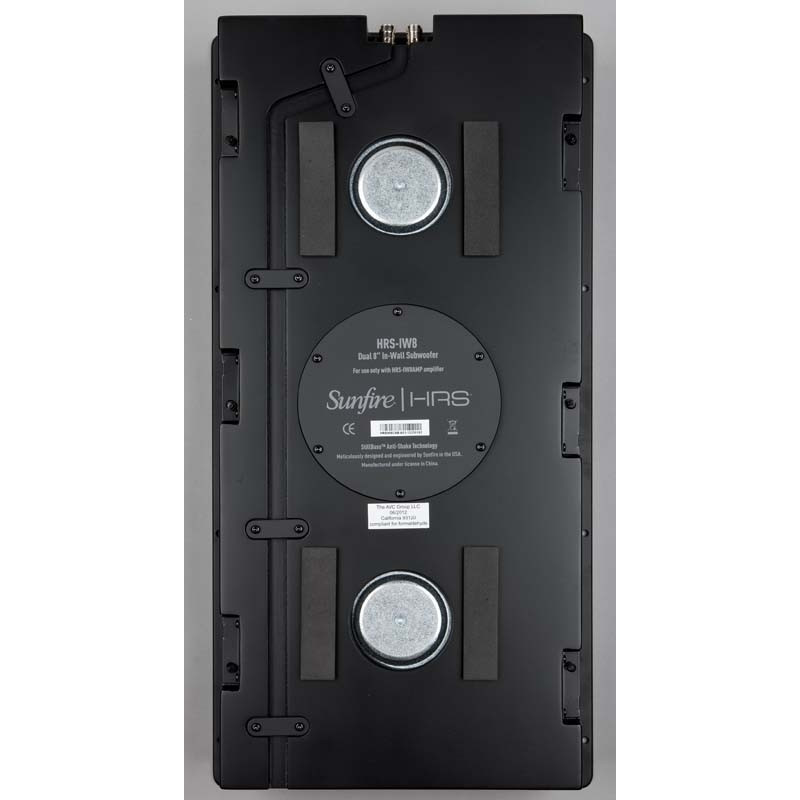 Sunfire HRS-IW8 - Caisson de basses in-wall. 2x Subwoofer actif de 200 mm. 520 Watts RMS. 33 - 150 Hz. 106 dB SPL. Seulement 95 mm d'épaisseur. Nécéssite l'ampli Sunfire HRS-IW8 Amp. Poids : 12,46 kg