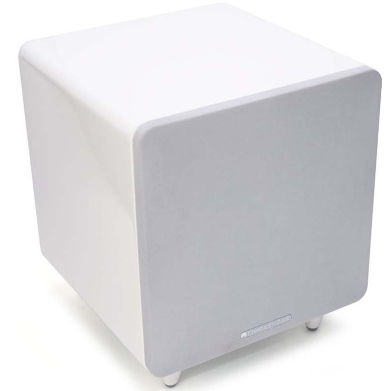 Cambridge Minx X300 - Caisson de Basses. 1x Subwoofer actif de 200 mm + 1x Radiateurs passif de 165 mm. Bande passante : 33 - 200 Hz. Fréquence de coupure : 50 - 200 Hz. Phase : 0 à 180°. 300 Watts. Poids : 7,5 kg. Finitions: Laqué Noir ou Laqué Blanc.