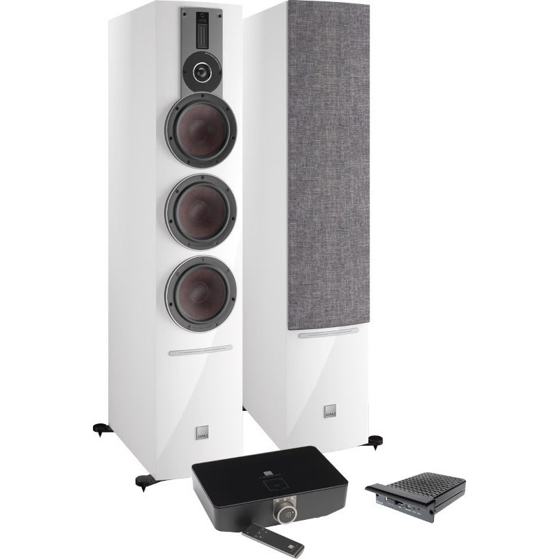 Dali Rubicon 8C + Sound Hub + NPM-2i - Ensemble Stéréo Sans Fil. Enceintes : 3 voies. 5 Haut-parleurs bass-reflex. 1x Tweeter à Dôme souple de 29 mm. 1x Tweeter Ruban 17 x 45 mm. 1x Médium/Grave à Cône en Fibre de Bois de 165 mm. Burr-Brown PCM1796. 24 bits / 192 kHz. 2x 250 W. 36 Hz - 30 kHz. Sans fil 5,8 GHz. 1x RCA. Poids: 27,8 kg pièce. Hub/Préampli : Liaison sans fil 5,8 GHz. Convertisseur 24 bits / 192 kHz. Bluetooth aptX. 2x Optiques. 1x Coaxial. 1x RCA Stéréo. 1x 1x AUX Mini-Jack 3,5 mm. NPM-2i : Convertisseur : 24 bits / 192 kHz. Support : MQA, Tidal Connect. Spotify. Apple AirPlay 2. 2x USB. 1x USB (Service). 1x Ethernet.