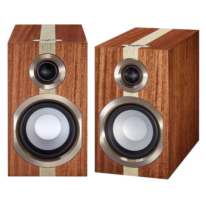Magnat Humidor - Enceintes Bibliothèques 2 voies 2 haut-parleurs bass-reflex. 1x Tweeter à dôme de 25 mm. 1x Grave Cône Céramique/Alu de 110 mm. 75 W. 4-8 Ω. 90 dB. 34 Hz - 50 kHz. Poids: 4,5 kg pièce.
