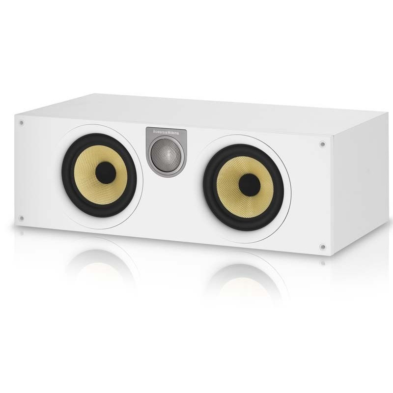 B&W HTM62 S2 - Enceinte centrale bass-reflex, 2 voies, 1x Tweeter double dôme aluminium à charge tubulaire Nautilus™ de 25mm et 2x Médium/Grave en fibre de Kevlar® de 13cm. 70Hz - 22kHz. 87dB. 8ohms. 120W. Poids: 7,9kg. Finitions: Bois noir ou Blanc mat.
