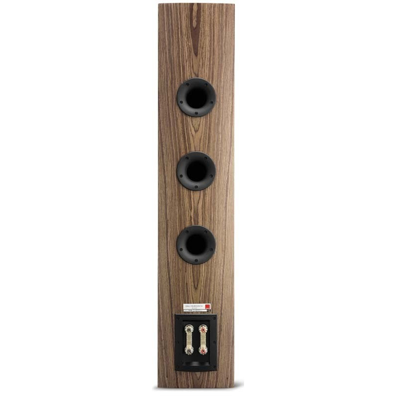 Hormis l'incroyage hybride composé d'un tweeter et d'un ruban, l'enceinte Dali Rubicon 8 vous offre trois haut-parleurs de médium/grave en fibre de bois de 165 mm de diamètre et est épaulé par trois évents dorsaux permettant une descente dans le grave suffisante, le tout filtré sur plusieurs étages 500/800/2500/14000.
