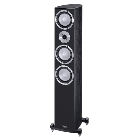 L'enceinte Magnat Quantum 727, le modèle phare de la série Quantum 720, est doté de quatre châssis de haut-parleur. Deux des trois haut-parleurs 170 mm FE Dynamics se chargent exclusivement des basses et offrent, en combinaison avec des boîtiers aux dimensions généreuses, une restitution volumineuse des basses. Le troisième haut-parleur assure la précision des voix. Les pilotes sont optimisés par laser Klippel et équipés d´une membrane céramique-aluminium. Pour les fréquences aigües, un tweeter HRH 30 mm avec membrane en tissu, atténuation spéciale et refroidissement à férrofluide a été prévu. Les composants ont été placés dans un boîtier arrondis sur les côtés et à l´arrière, dotés d´entretoises complexes et d´une construction à faible résonance. Le cache textile est fixé par aimant sur la paroi vernie nacrée matte.