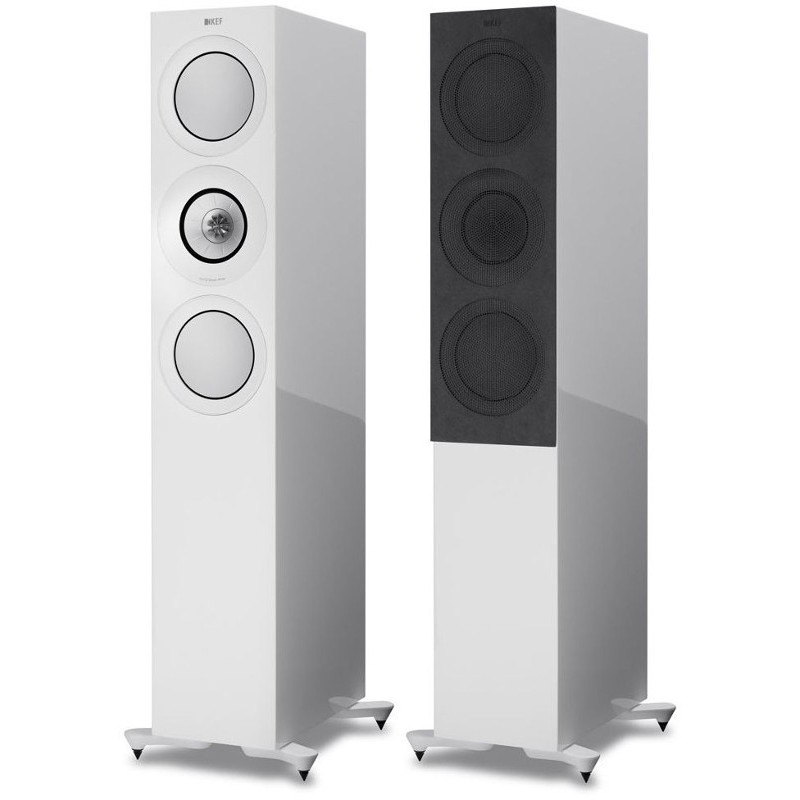 KEF R7 - Enceintes Colonnes. 3 voies. Bass-Reflex. 1x Uni-Q Aluminium : Tweeter Aluminium de 25 mm. Médium Aluminium de 125 mm. 2x Graves Hybride Aluminium de 165 mm. 15 - 250W. 88 dB. 8 Ω. 48 Hz - 28 KHz. Poids : 31,4 kg pièce.