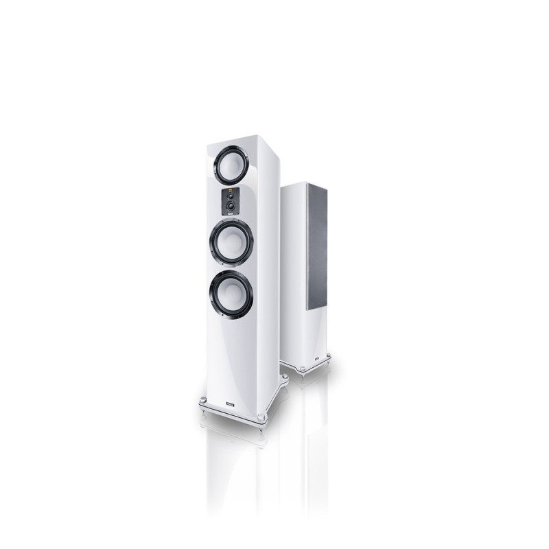 La Magnat Signature 909 incarne le meilleur de la série 900. Avec une configuration à 4 voies complètes, elle fait office de référence acoustique ; et avec une hauteur d’environ 1,20 m elle est une véritable réussite visuelle. Le module d’aigus est complété ici par un haut-parleur de médiums de 170 mm et deux haut-parleurs de graves d’un diamètre impressionnant de 200 mm. Cela permet à la Magnat Signature 909 de diffuser les fréquences les plus basses jusqu’à 22 Hz. Avec son rendement de 93 dB, elle ne sollicite pas trop l’électronique de l’amplificateur raccordé, malgré ses hautes performances. Les bornes autorisent naturellement le bi-câblage et la bi-amplification, c’est-à-dire l’utilisation de différents câbles ou même de différents amplificateurs pour les basses et les médiums/aigus.