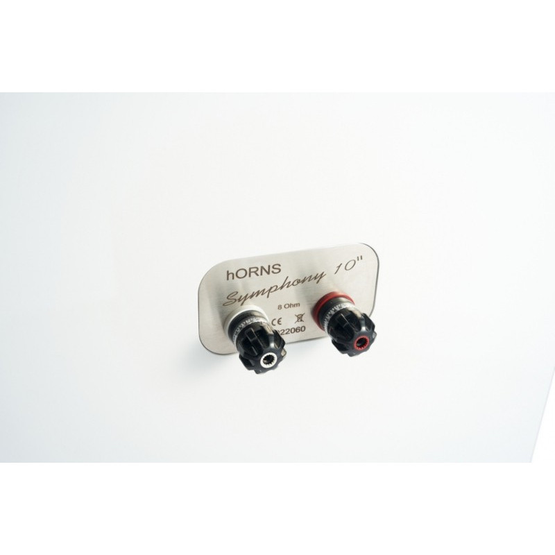 hORNS Symphony 10 - Enceintes Colonnes 2 voies 2 haut-parleurs. Bass-reflex. 1x Tweeter Dôme Titane de 50,8 mm avec Compression. 1x Médium/Grave a Membrane Papier de 250 mm. 8Ω. 92 dB. 35 Hz - 20 kHz. Contactez-nous pour les finitions. Poids: 60 kg pièce.
