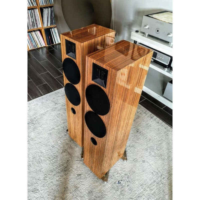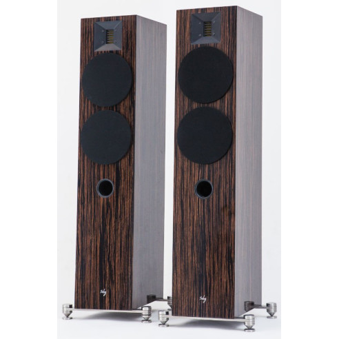 hORNS 5 Degrees N°27 - Enceintes Colonnes 2 voies 3 haut-parleurs. Bass-reflex. 1x Tweeter Membrane Papier de 45 mm. 2x Médiums/Graves a Membrane AMT de 178 mm. 8Ω. 88 dB. 45 Hz - 30 kHz. Contactez-nous pour les finitions. Bornier en WBT. Poids: 23 kg pièce.