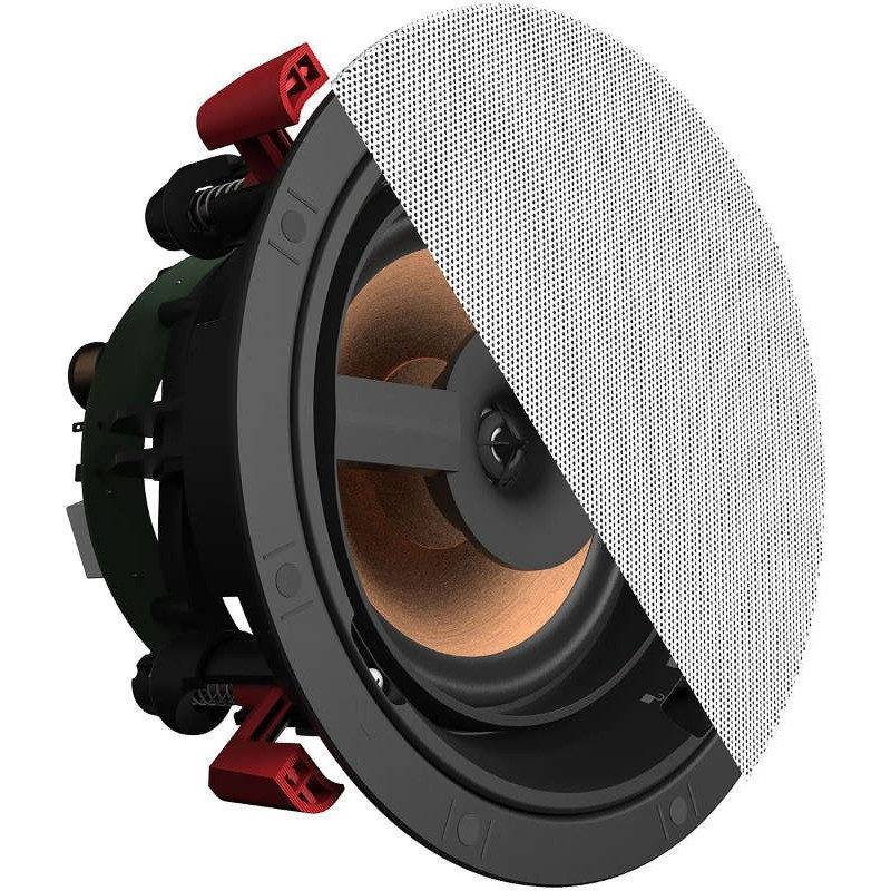 Klipsch PRO-16-RC - Enceinte InCeilling. 1x Coaxial dôté de 1x Tweeter à Dôme Aluminium de 25 mm à charge ABS TracTrix®. 1x Médium/Grave IMG de 165 mm. 50 W RMS. 63 Hz - 20 kHz. 8Ω. 94 dB. Angle de Diffusion 100°. Poids: 3,18 kg.