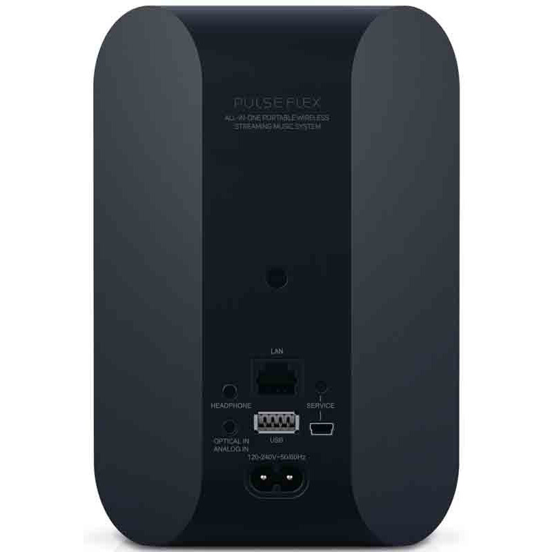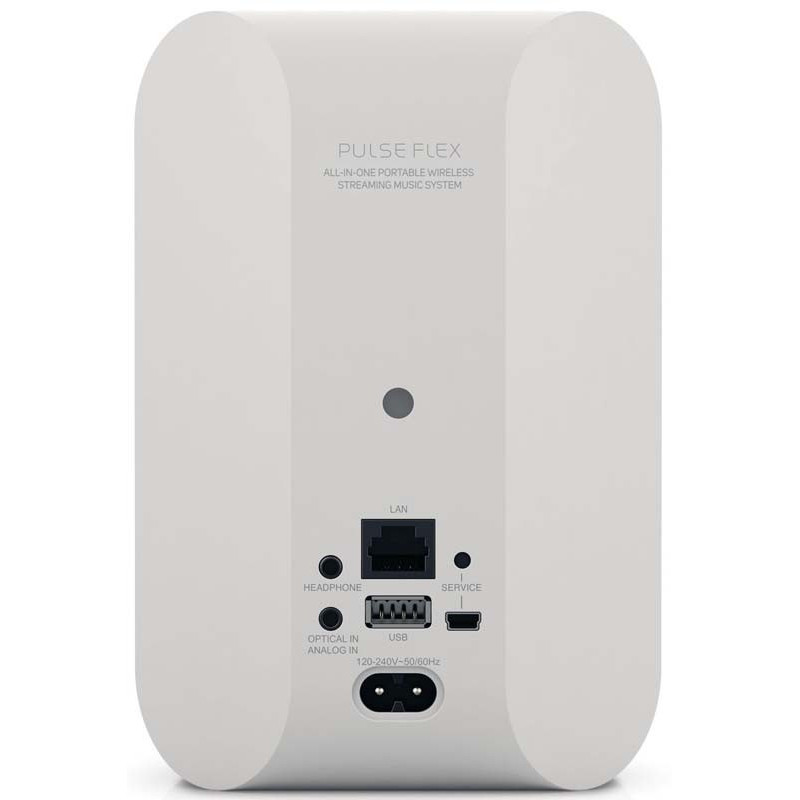 Bluesound Pulse Flex - Enceinte sans fil compact. Amplification numérique NAD. 10 Watts RMS. 45 Hz - 20 kHz. 1x Tweeter de 25 mm. 1x Médium/Grave de 89 mm. DAC 24 bits / 192 kHz. Streaming audio. WiFi, Bluetooth aptX, USB A & B, Ethernet, Toslink. Poids: 1,23 kg.