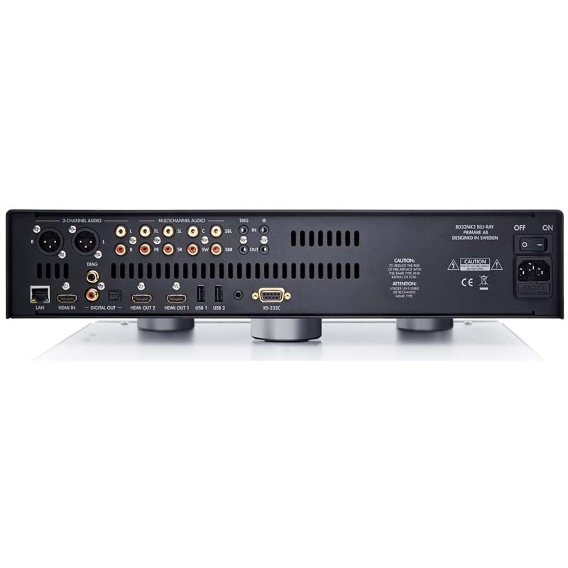 Primare BD32 MKII - Lecteur Blu-Ray. DVD, CD, SACD, DVD-A, DSD. 1x Entrée & 2x Sorties HDMI 1.4a 3D. Interface OLED. Convertisseur N/A Crystal DSD DAC CS4398. 1x XLR Stéréo. 1x Multicanal Audio. 2x USB. Poids : 8,5 kg. Noir ou Titane.