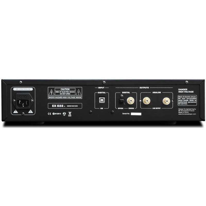 BC Acoustique EX-622.1 - Lecteur CD avec convertisseur 24 bits/96 kHz. Sorties: 1x RCA Stéréo, 1x Optique, 1x Coaxial. Entrée: 1x USB (DAC) pour brancher un ordinateur. Poids : 9 kg. Noir ou Silver.