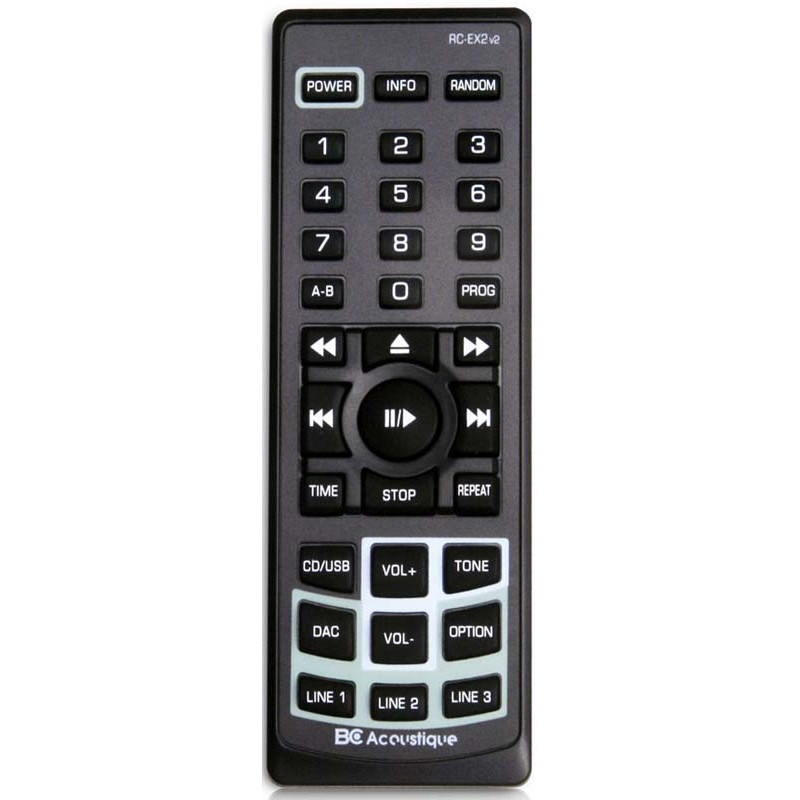 La platine CD BC Acoustique EX-622.1 est livrée avec une télécommande. Elle a été conçue pour être à la fois compatible avec votre platine CD mais aussi avec le plus possible d’appareils de la gamme BC Acoustique (amplificateurs).