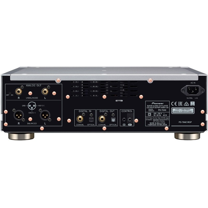 Les circuits numériques et analogiques ont une alimentation électrique séparée discrète. Le lecteur Pioneer PD-70AE a été conçu avec un étage d’alimentation et un chemin de signal audio très courts pour permettre la restitution d’un son cristallin d’une grande pureté.