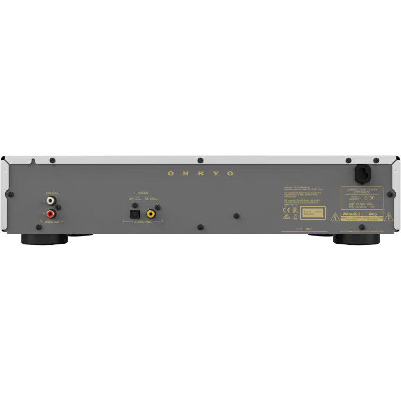 Onkyo Icon C-30 - Lecteur CD. Technologie Vector Linear Shaping Circuit. Horloge de haute précision de ±10PPM. Support : CD, CD-R/RW, MP3, WMA. Convertisseur 24 bits / 192 kHz. 107 dB. 1x Optique. 1x Coaxial. 1x RCA Stéréo. 1x Casque 6,35 mm.