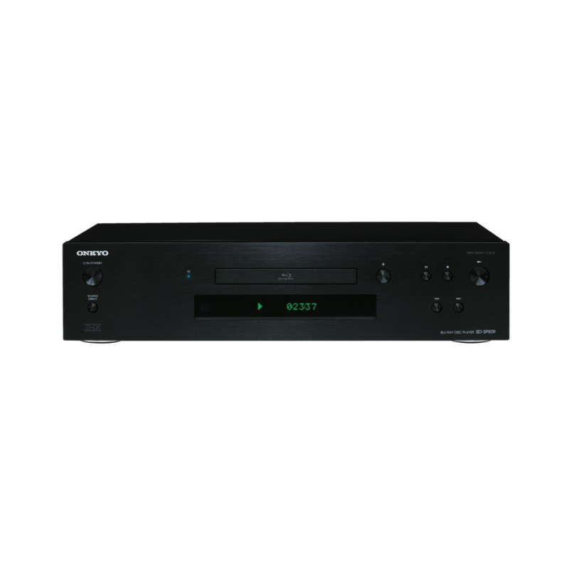 Onkyo BD-SP809 - Lecteur Bluray 3D Upscaling 1080p, HDMI. Certifié THX. Lit les DVD et CD. 1x Port USB pour les contenus MP3 & DiVX PLUS HD (mkv). 2x sorties HDMI. Port ethernet (RJ45) pour la lecture en réseau de vos fichiers musicaux et vidéos.
