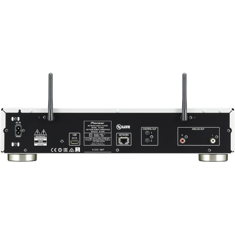 Pioneer N-30AE - Lecteur Audio Réseau. 4 Hz - 80 kHz. 111 dB. Convertisseur: 2x ESS Sabre 24 bits / 192 kHz. DSD 64 / 128 & 256.Streaming Audio AirPlay 16 bits / 44,1 kHz & Streaming DLNA PCM et DSD. Google Cast. FireConnect. Spotify Connect. Lecture audio sur Clé USB et Disque Dur. Poids : 3,4 kg