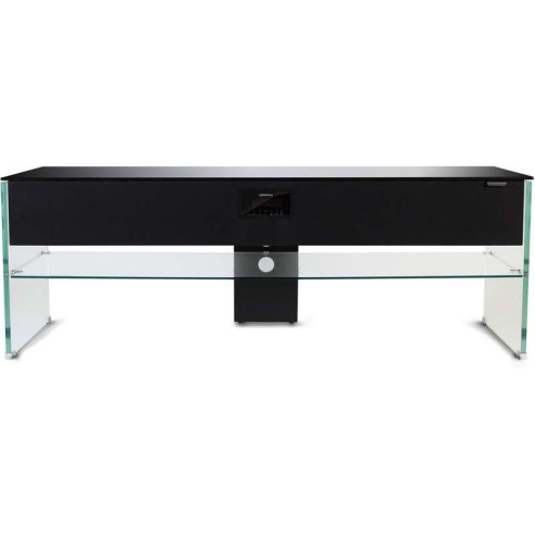 Ce meuble Norstone Scala viendra comme flotter dans votre salon grâce à ses montants en verre trempé transparent. Derrière son abattant en tissu noir pour enceintes, le Norstone Scala renferme toute sa puissance ainsi que d’astucieux rangements pour vos cd et dvd.