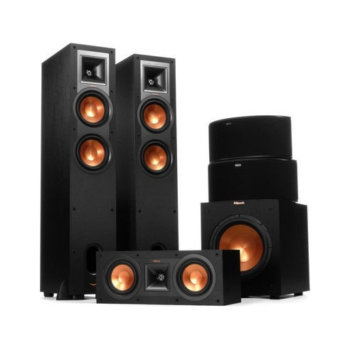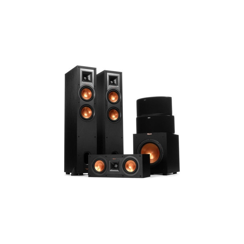 Pack Klipsch R-26FA 5.1.2 ATMOS - Pack d'enceintes composé de 1x paire de colonnes/atmos Klipsch R-26FA + 1x paire de surrounds Klipsch R-14S + 1x centrale Klipsch R-25C et 1x caisson Klipsch R-10SW.