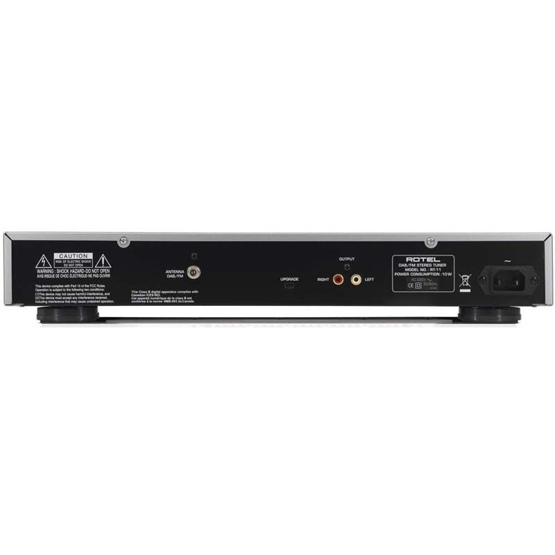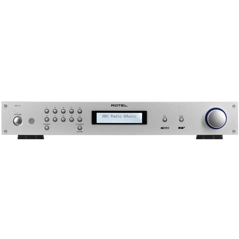 Rotel RT-11 - Tuner FM DAB+. Mémoire jusqu'à 30 stations. Antenne combinée FM & DAB+. 1x RCA Stéréo. 1x Antenne FM/DAB+. Poids: 4,3 kg.