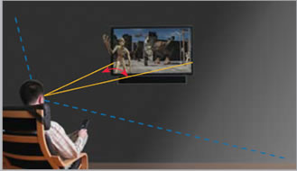 C’est un lieu commun que d’écrire que plus la taille de l’image est imposante, plus l’effet d’immersion en 3D sera ressenti. Il est donc essentiel que l’ensemble de votre champ de vision soit envahi par les images sans que vous ayez besoin de vous coller contre l’écran. Même si un écran de plus de 1m20 de diagonale permet d’ouvrir une fenêtre sur le monde en 3D, un écran de projection de plus de 3m80 vous immerge totalement dans un monde 3D.